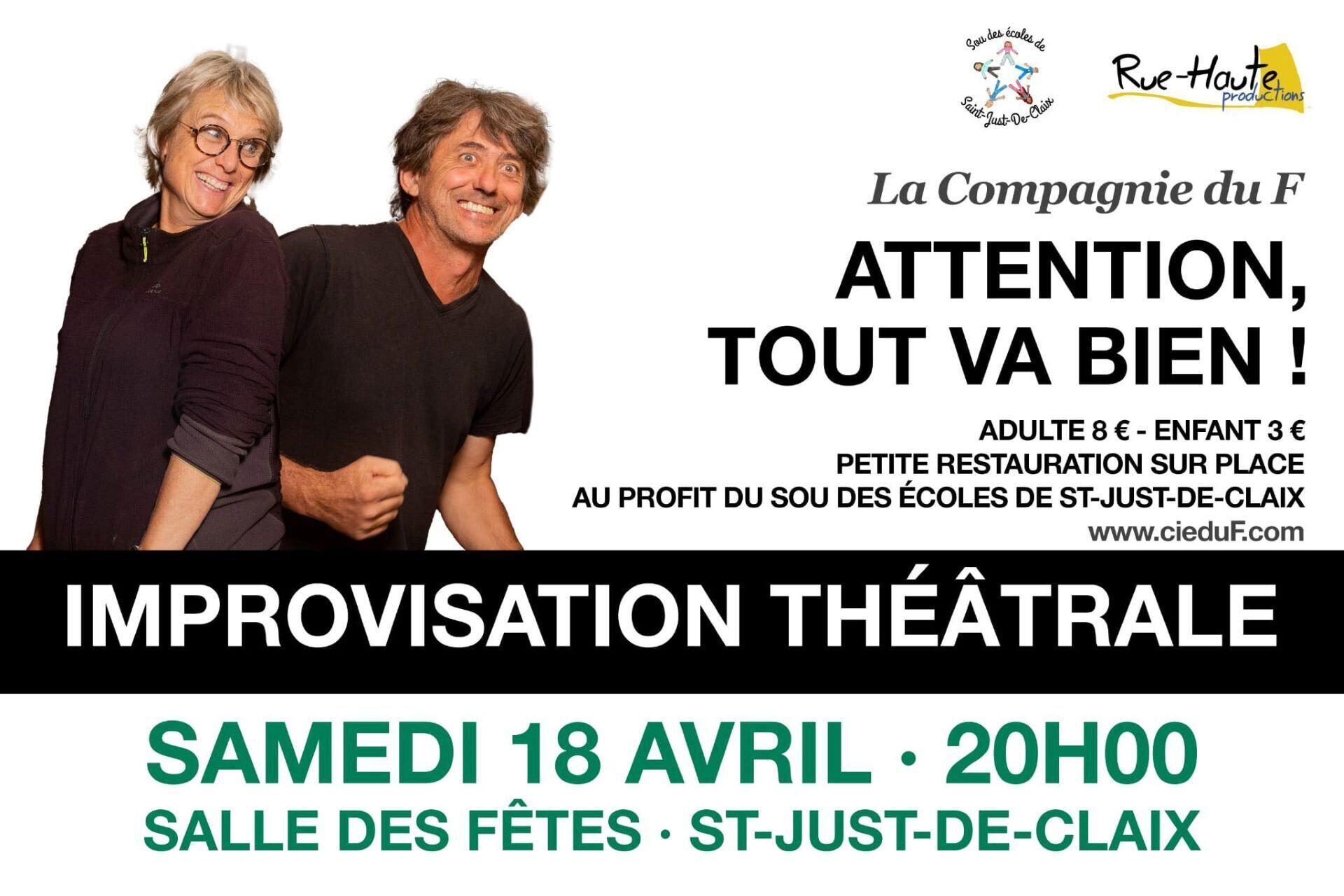 "Attention tout va bien !" par la Compagnie du F, qui promet de belles tranches de rire - en collaboration avec Rue Haute Productions - petite restauration sur place